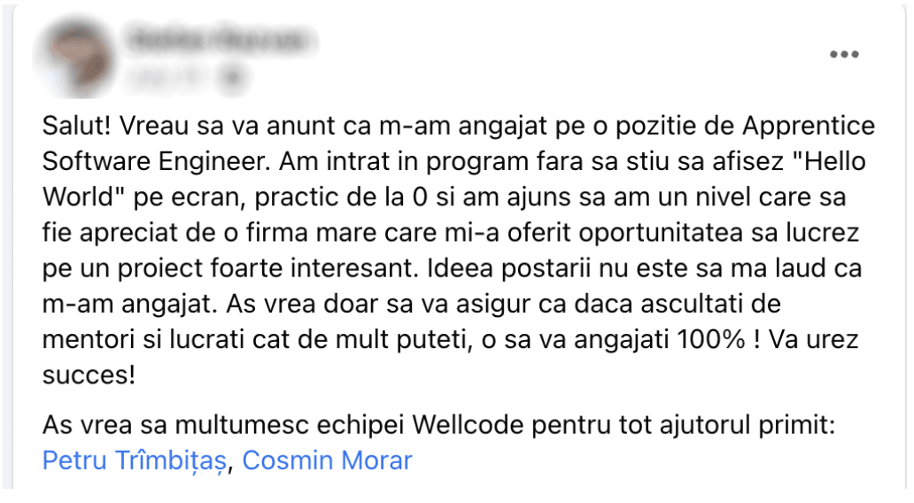 A fondat platforma WellCode, respectiv cursul gratuit de programare care are peste 180.000 de cursanți înregistrați, iar prin programul de mentorat a ajutat peste 125 persoane să se angajeze ca programatori.
